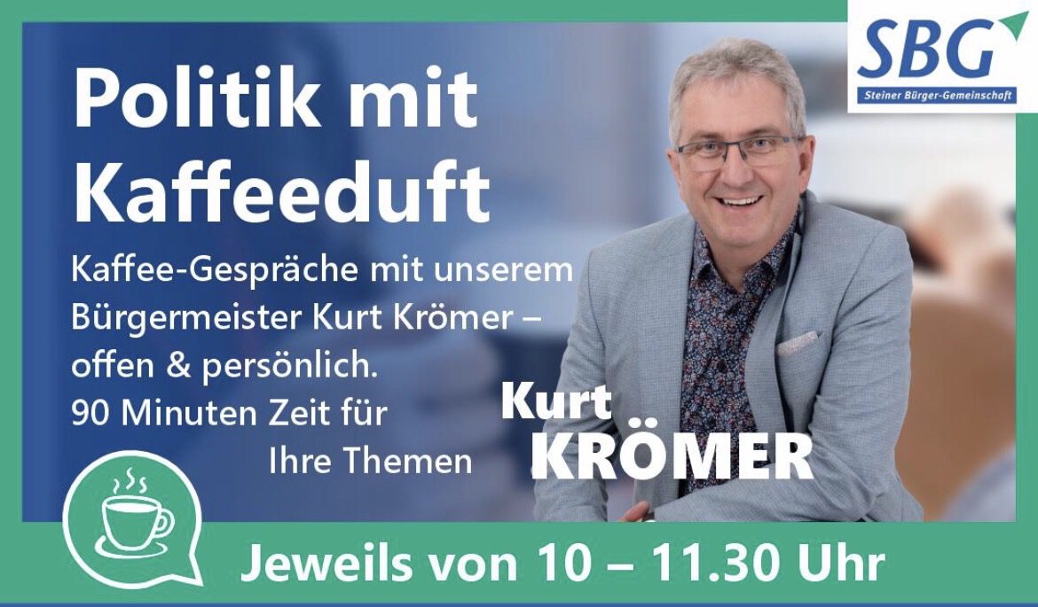 Unter dem Motto „Politik mit Kaffeeduft“ lädt unser Bürgermeisterkandidat Kurt Krömer zu einer offenen Gesprächsrunde ein. Das Ziel: Ein ehrlicher, persönlicher Austausch auf Augenhöhe.